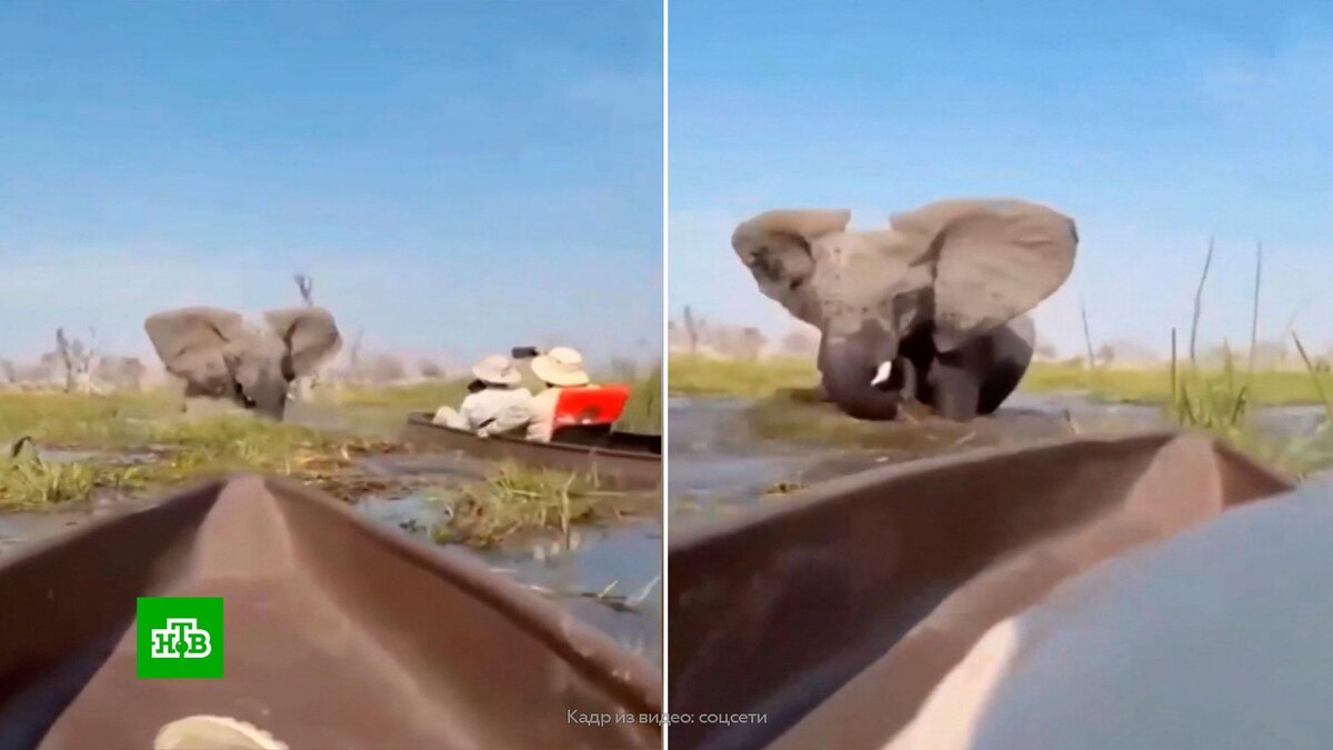 В Ботсване слониха догнала и перевернула каноэ с туристами, которые во время сафари слишком близко подплыли к слонятам. Чтобы окончательно завершить воспитательный процесс, слониха еще и настучала хоботом по головам путешественников.