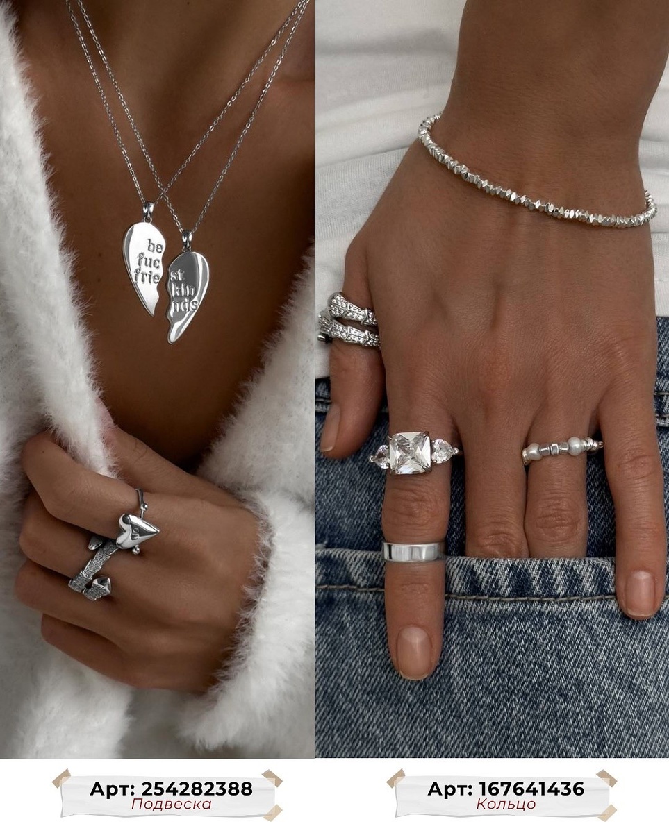 - Для дерзкой эстетики: кафф-каскад 279328729 + подвеска-дуэт 254282388 (носить разной длины) + несколько колец из набора 245385382.