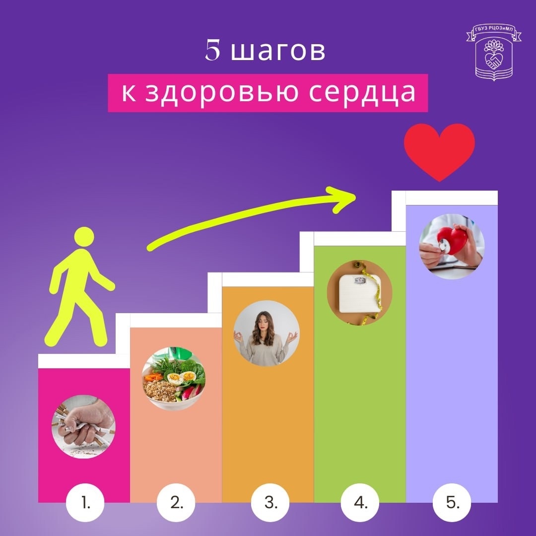 В карточках специалисты Центра общественного здоровья Уфы собрали пять шагов к здоровью сердца.