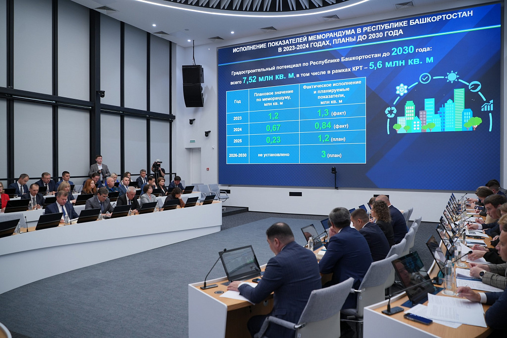И.о. министра строительства и архитектуры республики Артем Ковшов доложил, что с начала реализации проекта КРТ в 2023 году в регионе заключено 36 договоров с градостроительным потенциалом более 3 млн кв. м и планируется расселить более 113 тысяч кв. м аварийного жилья. По словам Ковшова, уже выданы разрешения на строительство домов в Уфе, Туймазах, Стерлитамаке и Нефтекамске.