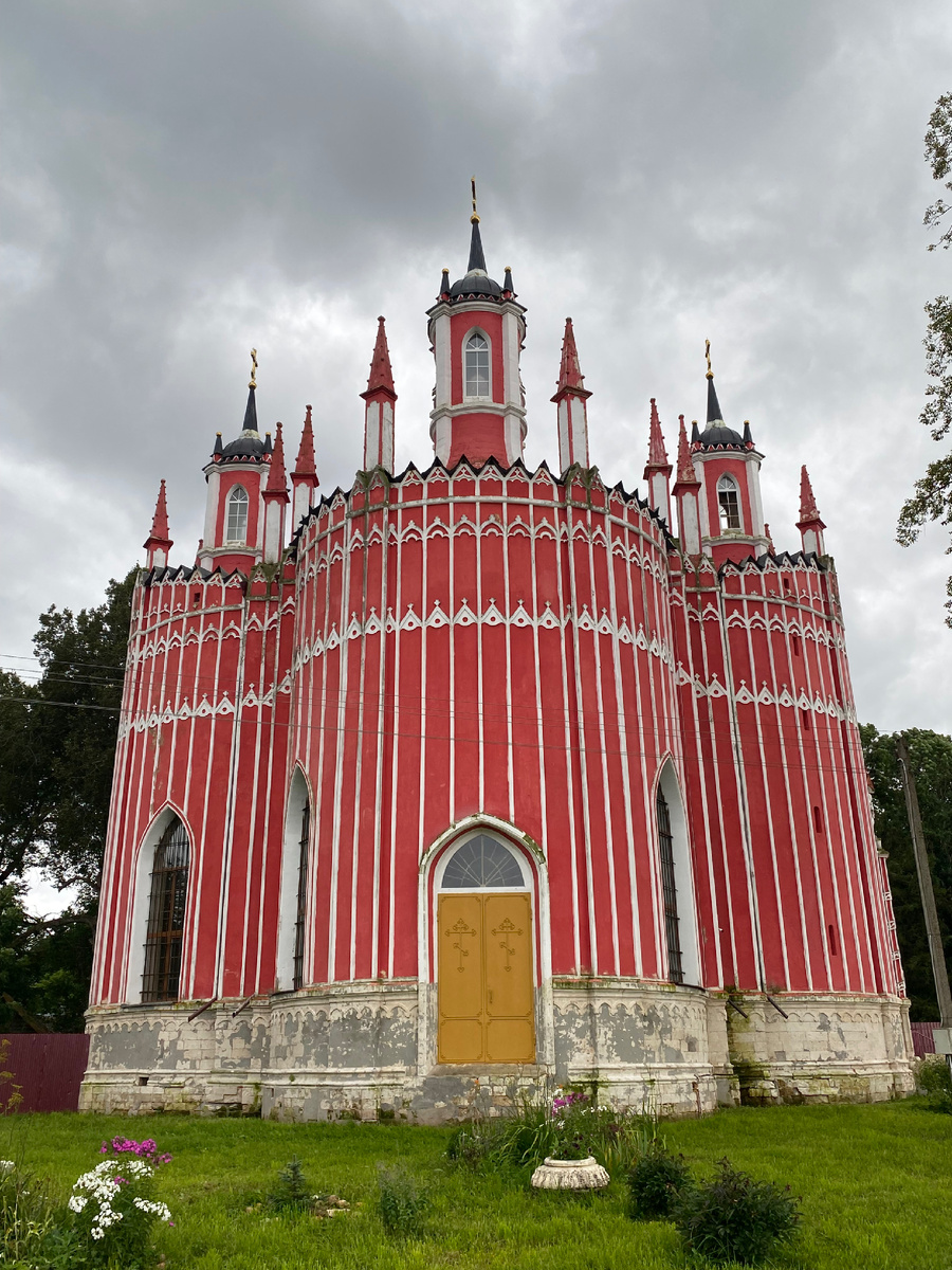 Это копия Чесменской церкви в Санкт-Петербурге, построенной в 1777 году в честь победы русского флота в одноименном морском сражении. Неоготическое чудо в русской глубинке. На меня произвела большое впечатление. Когда я ехал на автомобиле понимал, что должен увидеть. Бывал у Чесменской церкви в Питере.