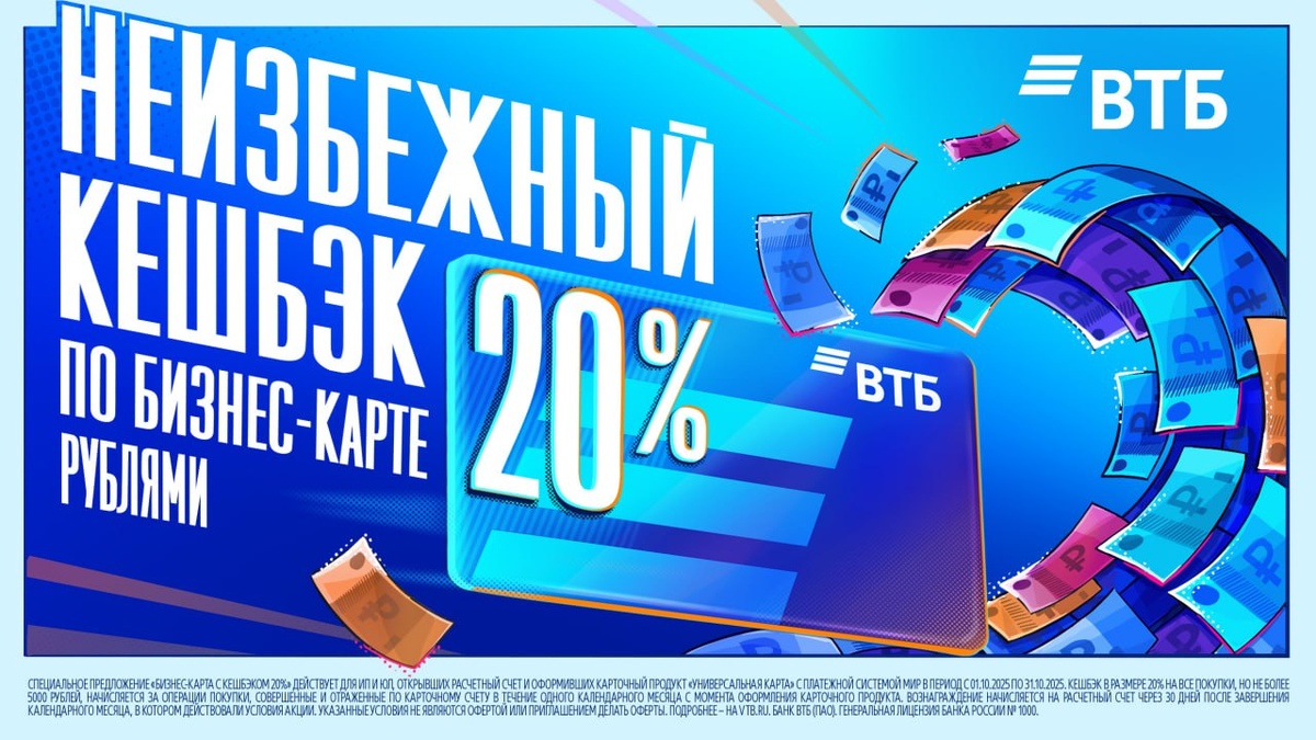 Верните часть бизнес-расходов с кешбэком 20% по карте ВТБ в октябре