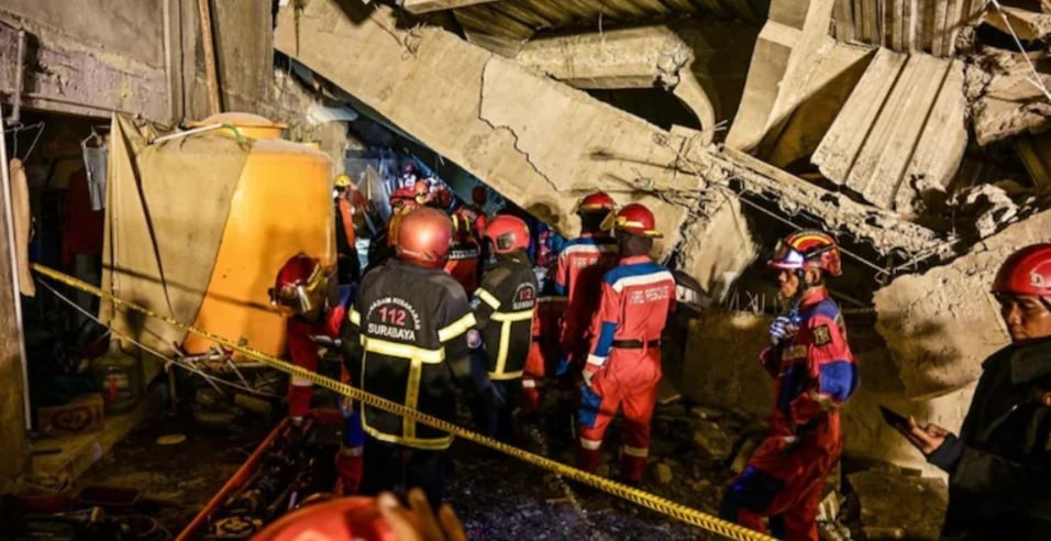 В Индонезии рухнула школа. Предварительно погиб один ребенок, 98 пострадали, а еще семь детей находятся под завалами Точное число жертв пока неизвестно. Спасатели работали всю ночь. Через 8 часов после обрушения вытащили еще 8 выживших и раненых. Также обнаружили ещё несколько тел, но число погибших пока не обновили. Трагедия случилась вчера вечером. В здании ремонтировали бетонную крышу, которая рухнула на детей исламская школы-интерната Аль-Хозини прямо во время молитвы.