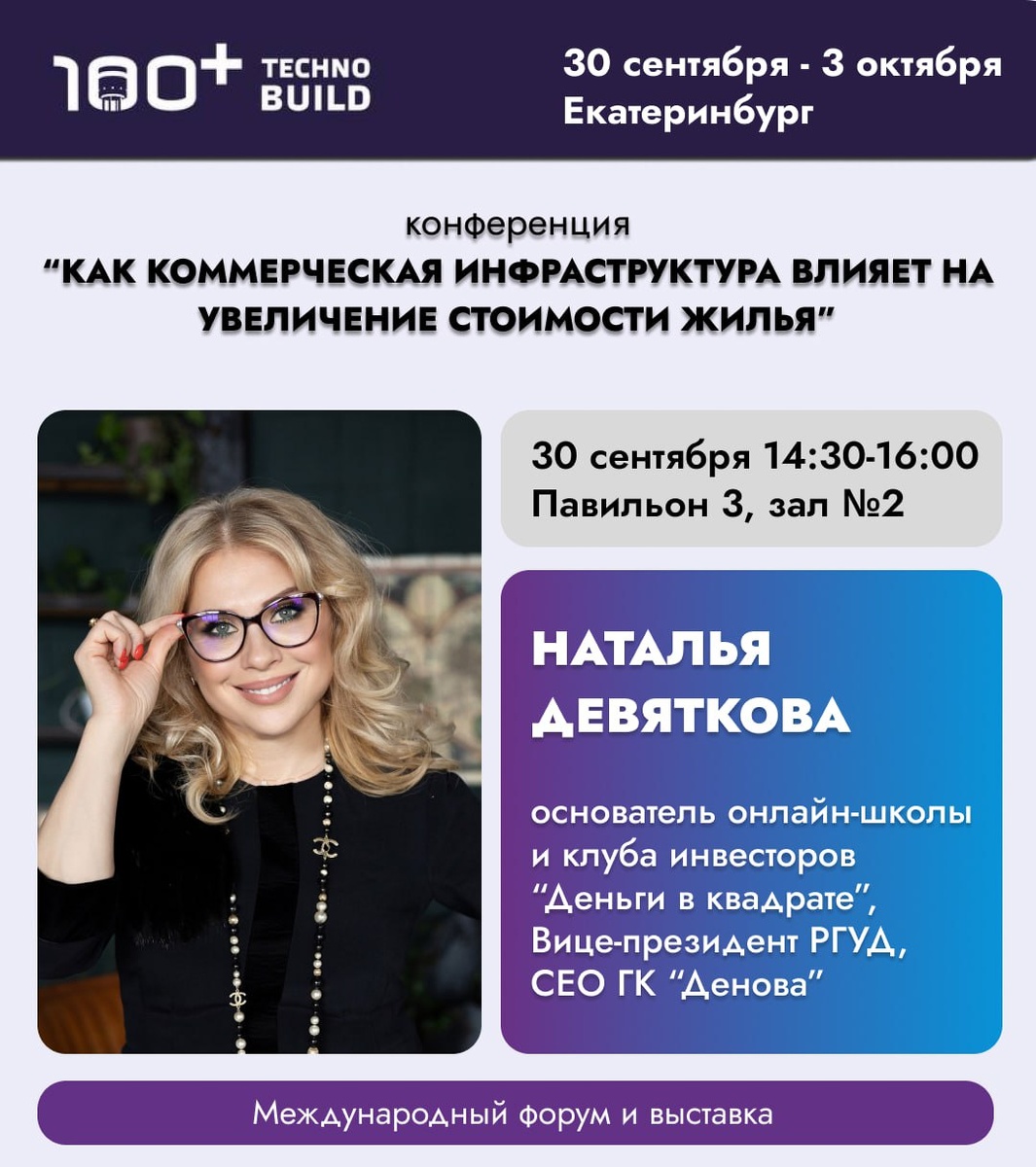 Я уже в Екатеринбурге! 👋🏻 ✔️ Сегодня выступаю на Международном форуме и выставке 100+ Techno Build Сессия: «От двора до квартала: как качество среды влияет на спрос и цену квадратного метра». Тема: "Как коммерческая недвижимость увеличивает стоимость жилья" Когда мы говорим о стоимости квадратного метра, часто думаем только о самом жилье: планировка, метраж, отделка. Но на цену напрямую влияет то, что окружает дом. 🛍 Магазины рядом, удобный офисный центр поблизости, кафе и сервисы в шаговой доступности — все это повышает привлекательность локации. И наоборот: если вокруг пустота, даже самые красивые квартиры будут продаваться сложнее и дешевле. Именно об этом я сегодня рассказываю в Екатеринбурге на Международном форуме100+ Techno Build. Приходите! 😊 📍 Екатеринбург Подробнее: https://707.su/x6aL