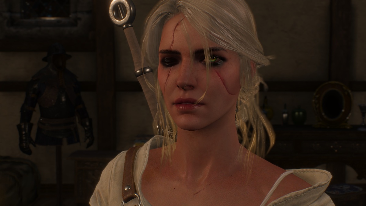 В большом волнении открыв их, ведьмак увидел перед собой стройную, высокую девушку с пепельными, тронутыми тонкими нитями седых прядок волосами, туго забранными в пучок на затылке. Имперские агенты были достаточно точны. Физические тренировки в Каэр Морхене и грибочки, как опасалась того Трисс, ей не повредили: природа и женское естество взяли своё. Старый шрам на левой щеке неплохо затянулся и почти не портил лица. Лишь правая изуродованная половина с закрытой глазницей, доставшаяся копии «по наследству» от Дуду при трансформации, портила общее впечатление. Зрелище всколыхнуло в душе ведьмака бурю воспоминаний и чувств, связанных с Цири, и остро напомнило об опасности, которая ей сейчас угрожает. Конечно, Цири может за себя постоять, но любым силам всегда есть предел, а всадники Дикой Охоты – не простые бандиты. Тот факт, что она не растеряла навыков суровой ведьмачьей школы, Геральта не успокаивал.