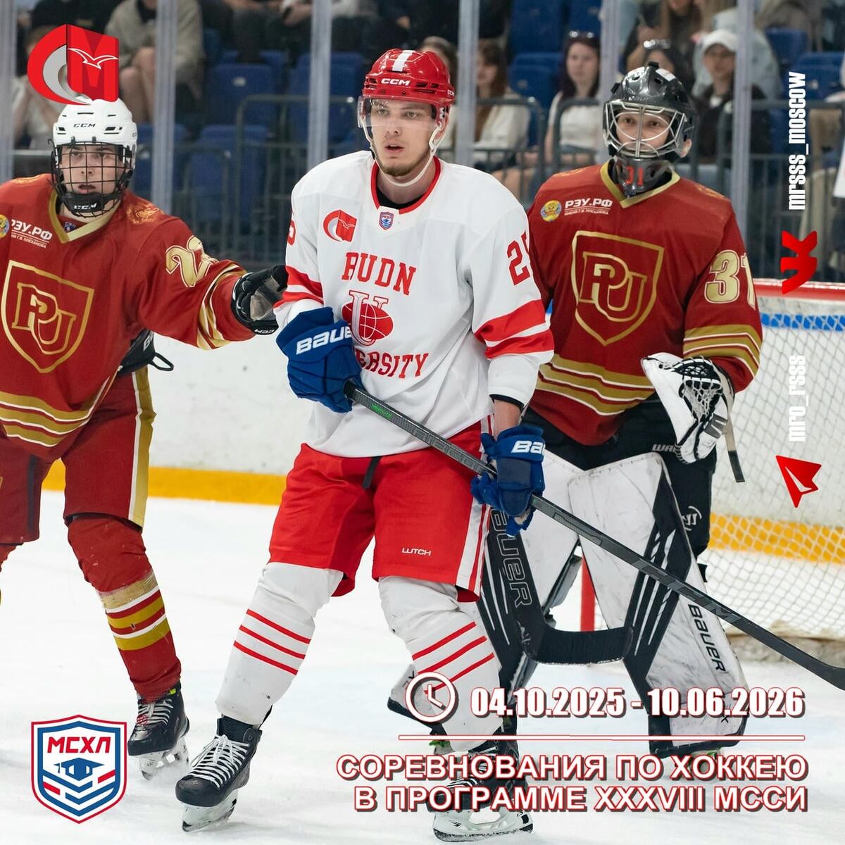 Регламент о проведении соревнований по хоккею в программе XXXVIII МССИ Чемпионат стартует 4 октября 2025 года и завершится 10 июня 2026 года. Подробнее: https://sportvmoskve.ru/news/20250930-reglament-o-provedenii-sorevnovaniy-po-hokkeyu-v-programme-xxxviii-mssi/