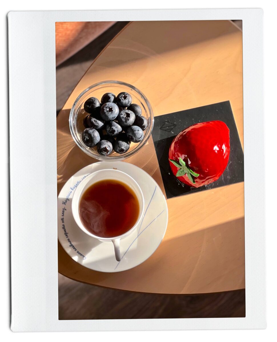 Сегодняшнее утро с клубничкой🍓❤️ Миндальный бисквит, компоте со свежей клубникой, ванильный мусс🫖🫖🫖