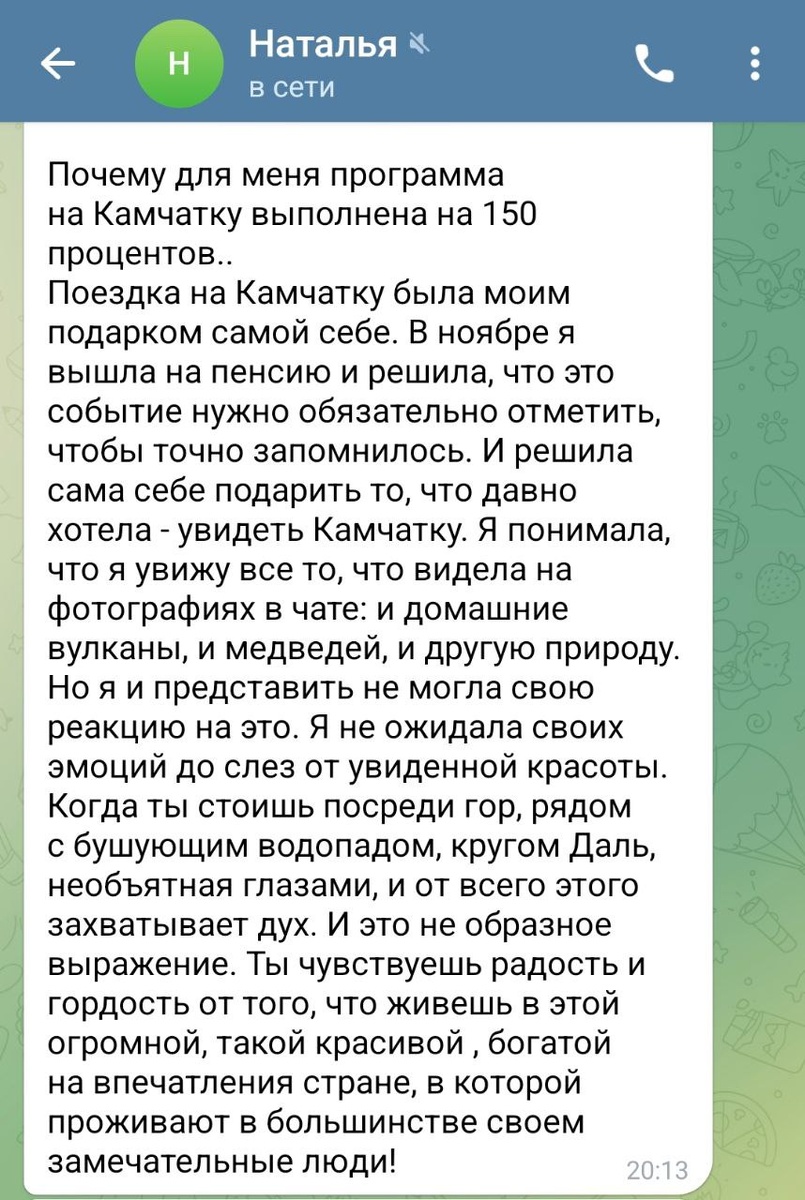 Знаете, эта группа была в конце июля. И вот то, что спустя месяцы, человек продолжает думать про эту поездку и эмоции не отпускают, очень ценно.