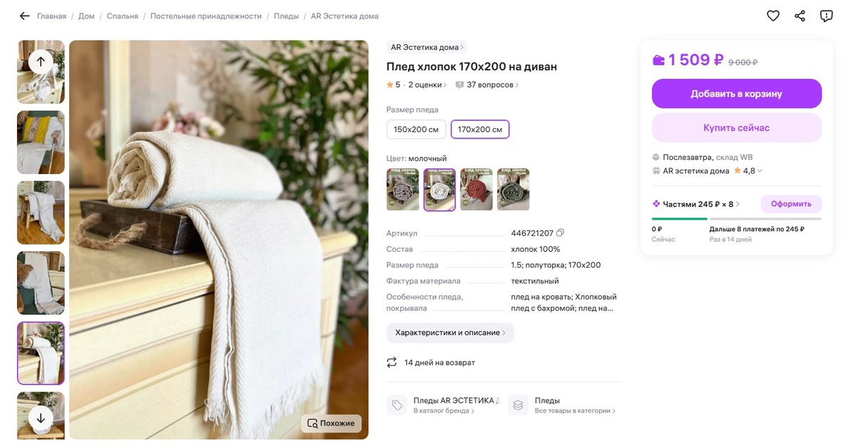 💬 Важно: я ничего не навязываю, просто делюсь личным опытом. Эта подборка - для вдохновения и хорошего настроения. Иногда, чтобы почувствовать уют, не нужны грандиозные ремонты или дорогие дизайнерские решения. Достаточно добавить несколько правильных деталей и дом сразу меняется. Я собрала для вас подборку вещей, которые точно помогут создать атмосферу тепла и заботы. Расскажу про каждую так, будто делюсь находкой с подругой за чашкой чая. Ну скажите честно, разве можно представить дом без пледа? Он словно символ уюта: согреться прохладным вечером, укутаться с книгой или фильмом, взять с собой на пикник. Этот плед мне особенно нравится - он двусторонний, выполнен в скандинавском стиле, лёгкий, но при этом тёплый. Размер у него 170х200 см - хватает и на кровать, и на диван, и просто завернуться с головой. Цвета тоже радуют: от спокойных бежевых и серых до трендовых хаки и терракотового. Натуральный хлопок не электризуется, приятен к телу и легко стирается. Единственное - стирать нужн