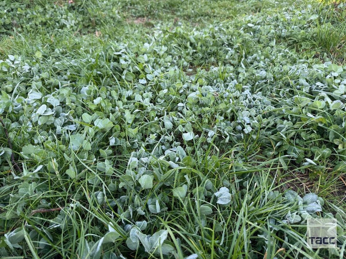 Первый осенний иней появился в Подмосковье после ночных заморозков.