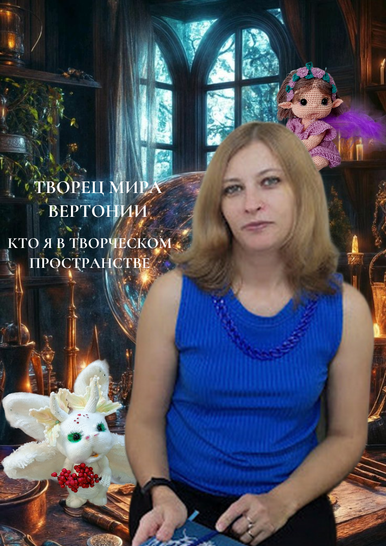 «Я не просто вяжу игрушки. Я плету нити реальности, превращая пряжу в живых существ, а сказки — в тактильные миры. Каждый мой мастер-класс — это новый закон магии Вертонии, каждая игрушка — воплощение души персонажа». Мои инструменты в работе: · Крючок как волшебная палочка,