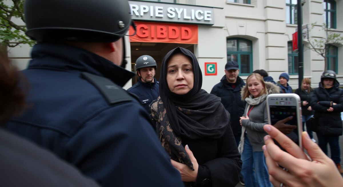 Эпицентр конфликта развернулся стремительно. Сначала — словесная перепалка, затем — приближение двух приставов, которые попытались увести женщину в коридор. По словам очевидцев, дама в платке вела себя эмоционально, требовала объяснений, на что один из сотрудников ответил строгим приказом успокоиться. Чуть позже к месту подошёл ещё один экипаж. По видео, которое сейчас гуляет в сети, сотрудники быстро схватили женщину за руки, свернули её к стене и надели наручники. Некоторые свидетели утверждают, что при этом сотрудник прижал её к асфальту; другие говорят, что силового приёма почти не было — всё происходило в ускоренном темпе и было плохо видно из-за толпы. На кадрах слышны крики: «Оставьте её!» и «Что вы делаете?» — а сама задержанная повторяет: «Я только хотела подать заявление, зачем вы меня трогаете?».