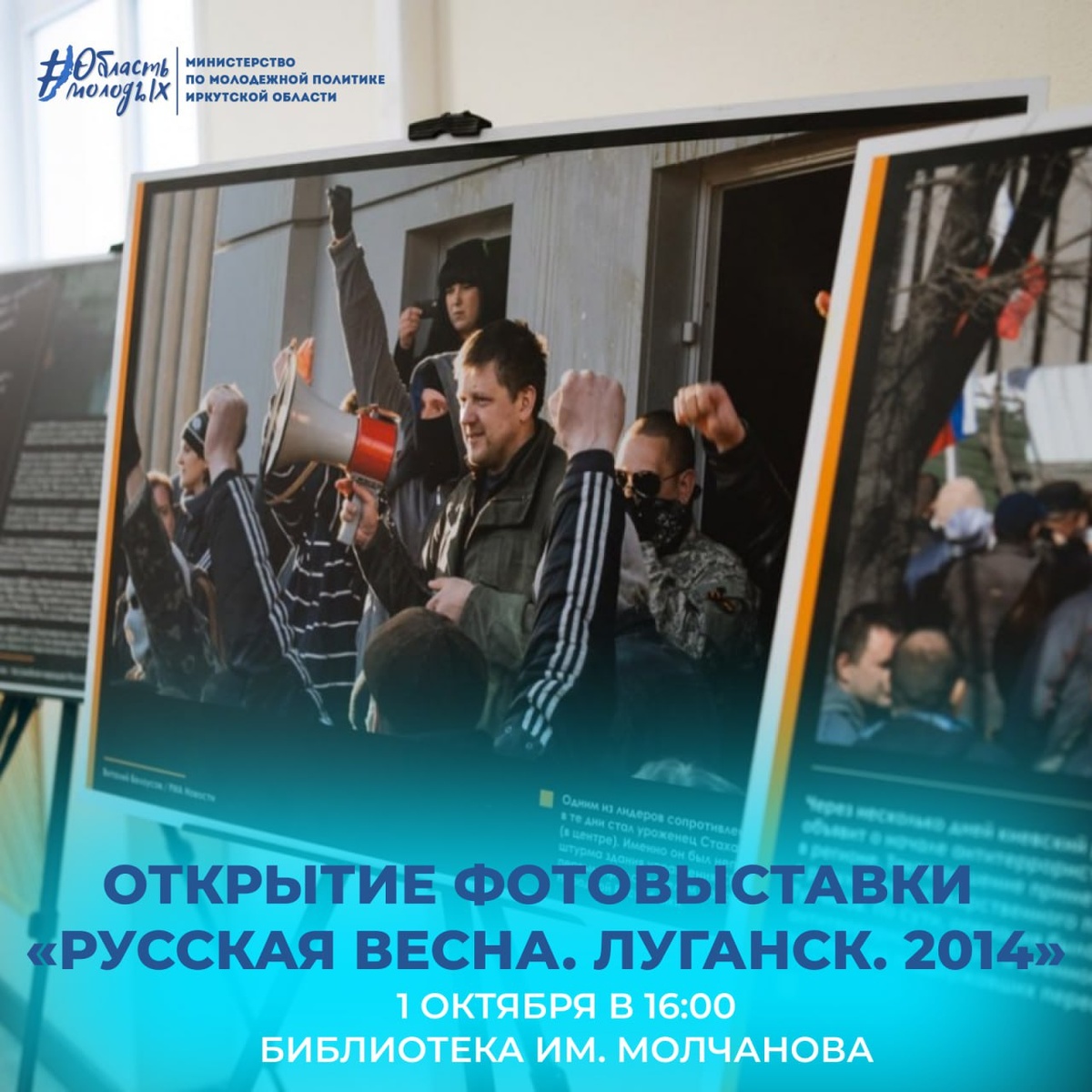 📹 «Русская весна. Луганск. 2014» — память, запечатлённая в кадре Приглашаем вас на открытие фотовыставки «Русская весна. Луганск. 2014», приуроченной к Дню воссоединения Донецкой и Луганской Народных Республик, а также Запорожской и Херсонской областей с Российской Федерацией. 🗓 Дата: 1 октября; 🕐 Время: 16:00; 📍 Место: Молчановка, ауд. 204. Выставка уже прошла путь от Луганска до Иркутска, побывав в Калуге, Петрозаводске, Великом Новгороде, Воронеже, Краснодаре, Крыму и Севастополе, подтверждая общность исторической судьбы всех регионов России. 🤩 По всем вопросам: 8 (3952) 48-66-80 (доб. 530) Приходите, чтобы увидеть, вспомнить и передать память дальше!🕊 ▫️ Подписывайтесь на Область Молодых | Подписывайтесь на наши социальные сети