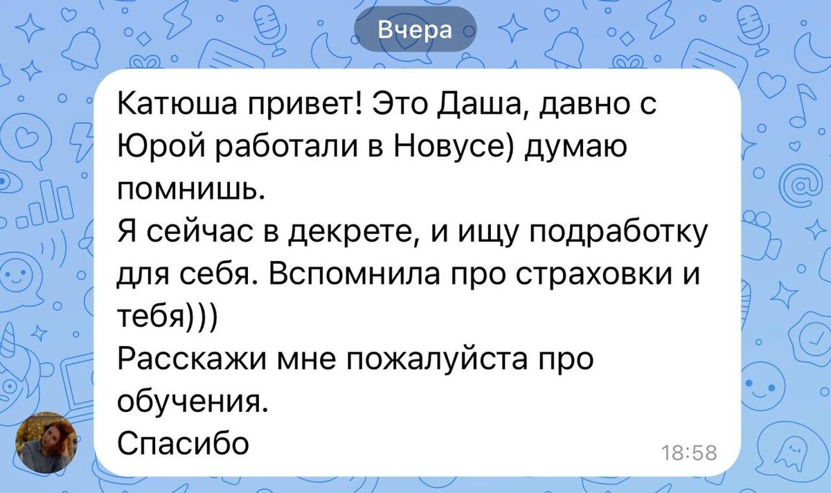 ✨ Хотите освоить новую профессию и начать зарабатывать уже в ближайшее время? Я создала авторский курс «Страховой агент с 0», который поможет вам войти в профессию даже без опыта. 💫 Теперь курс доступен на удобной платформе GetCourse 👉 ссылка 📚 В программе 6 практических уроков: 🌟 Введение в страхование 🌟 Основные виды страхования (Часть 1) 🌟 Основные виды страхования (Часть 2) 🌟 Изучение платформы для оформления полисов ОСАГО 🌟 Где искать клиентов? 🌟 Взаимодействие со страховыми компаниями 💼 После прохождения курса вы будете готовы: оформлять полисы, находить клиентов, сотрудничать со страховыми компаниями. 🚀 Это реальная возможность быстро освоить востребованную профессию и начать зарабатывать удалённо! Переходите по ссылке и записывайтесь прямо сейчас 👉 ЖМИ #страхованиеводнокасание #новаяпрофессия #страховойагент