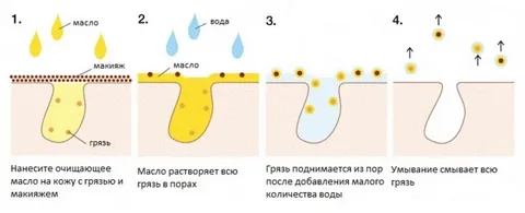 Гидрофильное масло - это инновационное косметическое средство для очищения кожи, название которого буквально означает «масло, которое любит воду». Благодаря современным технологиям удалось создать продукт, который эффективно удаляет макияж и загрязнения, но при этом легко смывается водой. Секрет эффективности гидрофильного масла заключается в особой формуле, где сочетаются натуральные масла и специальные эмульгаторы. При контакте с водой масло превращается в нежную молочную эмульсию, которая легко смывается, не оставляя жирного блеска. Гидрофильное масло эффективно справляется с различными задачами: Гидрофильное масло - настоящий профессионал в борьбе с загрязнениями. Оно легко справляется с удалением любого макияжа, включая водостойкий, эффективно очищает от солнцезащитных средств, устраняет излишки кожного сала и глубоко очищает поры. Кроме того, масло защищает кожу от негативного воздействия жесткой водопроводной воды. Главное достоинство гидрофильного масла - бережное отношение к к