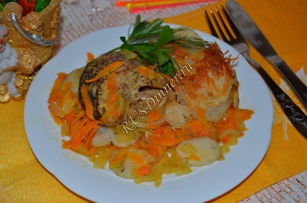 Щука, запеченная в духовке с овощами От автора: Щука, запеченная в духовке с овощами подойдет как повседневная еда, когда надоедает курица или мясо. Ингредиенты: Щука - 600 гр. (очищенная) Картофель - 600 гр. Морковь - 200 гр. Лук репчатый - 2 шт. Масло оливковое - 30 мл. Масло растительное - 60 мл. Сыр - 70 гр. Соль - 10 гр. Перец черный молотый - 5 гр. Соус соевый - 100 мл. (0,5 ст.) Лимон - 1 шт. Сметана - 60 мл. Уксус яблочный - 75 мл. (3 ст.л.) Вода - 250 мл. Источник: https://rusdinner.ru/page/shhuka-zapechennaja-v-duhovke-s-ovoshhami