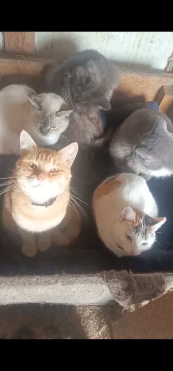 Все кошки в ошейниках, кроме Женьки. Мы просто не понимаем, как она могла бросить детей 🙀😿.