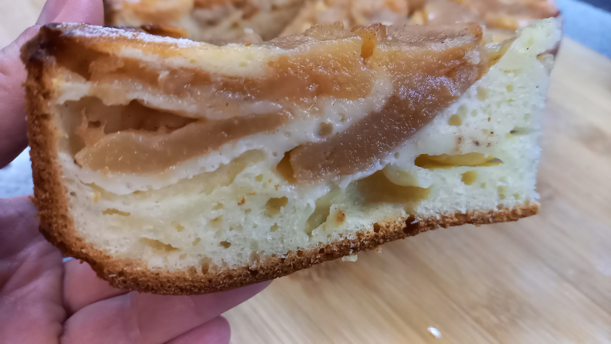 Чудесный пирожок для уютного домашнего чаепития. Делается легко и просто. Кислинка ароматных яблок отлично сочетается с нежным сладковатым тестом. Попробуйте обязательно, это очень вкусно! 🍏 йогурт греческий(или другой густой) 250 г 🍏 яйца 3 шт. 🍏 сахарный песок 150 г 🍏 ванильный сахар по вкусу 🍏 соль щепотка 🍏 масло растительное 6 ст.л. 🍏 мука пшеничная 300 г+ разрыхлитель 1 ч.л. 🍏 яблоки 3 шт.(лучше с кислинкой, у меня антоновка) 🍏 корица по вкусу 🍏 сливочное масло, сахарный песок Яблоки очистить, порезать некрупными дольками, смешать с корицей. В подходящую ёмкость выложить йогурт, добавить яйца, соль, сахар, ванильный сахар и тщательно перемешать венчиком(можно миксером), затем влить масло и снова перемешать. Добавить муку с разрыхлителем и замесить густое тесто Форму для выпечки (у меня разъемная 24 см) выстелить пекарской бумагой, промазать сливочным маслом и посыпать сахаром Разложить яблоки И залить их тестом Выпекать в разогретой духовке минут 40-45 при 180°. Испеч