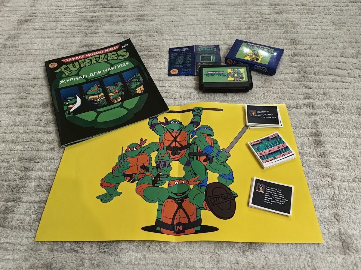 Журнал для наклеек и картридж с мануалом по игре Черепашки Ниндзя 1 на денди!