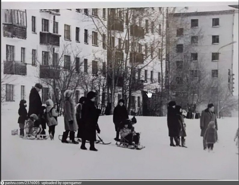 Ребятишки, катающиеся с горки, на берегу реки Битёвка Описание: На заднем плане слева - жилой дом №13 по ул. Карельцева. В правой - торец жилого дома №11 по ул. Карла Маркса. На переднем плане фото ребятишки, катающиеся с горки (берега реки Битёвки) на санках и "снегоходах" в сопровождении взрослых. 1980, Россия, Курганская область, Курган https://vk.cc/cPXlCA