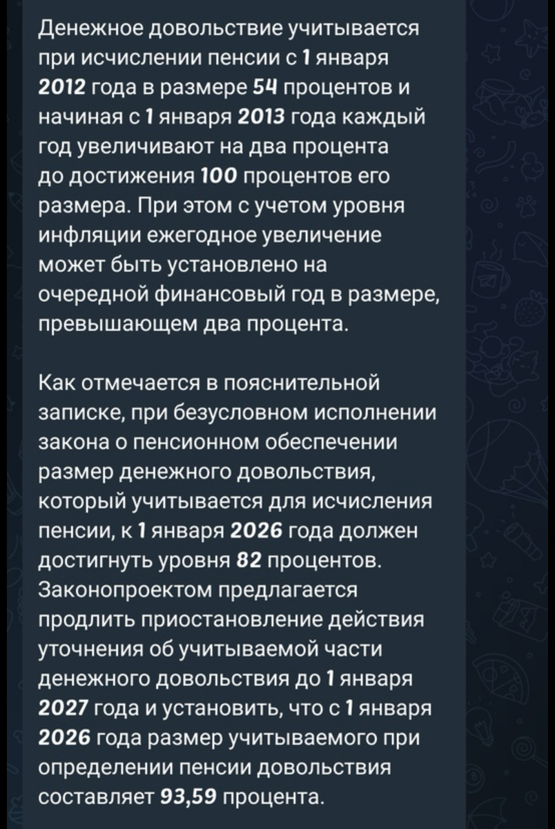 В ГД внесен законопроект правительства по "ПК" с 1.01.26... "Военный пенсионер" сообщает в телеге!