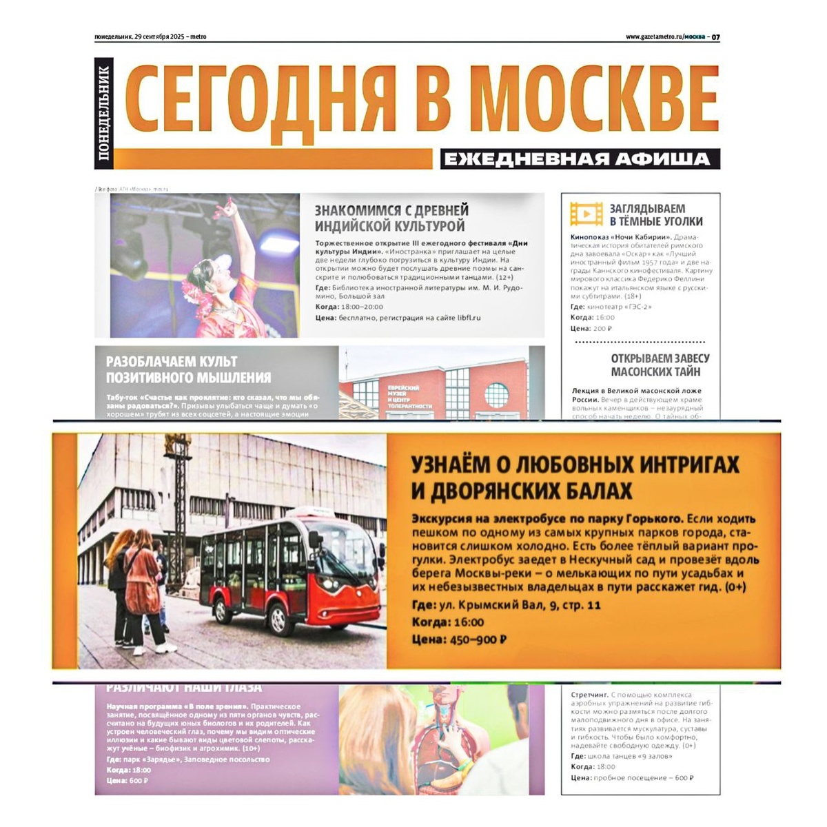 📝Открыли свежий выпуск газеты Metro и увидели статью, посвящённую экскурсии на электробусе по парку Горького