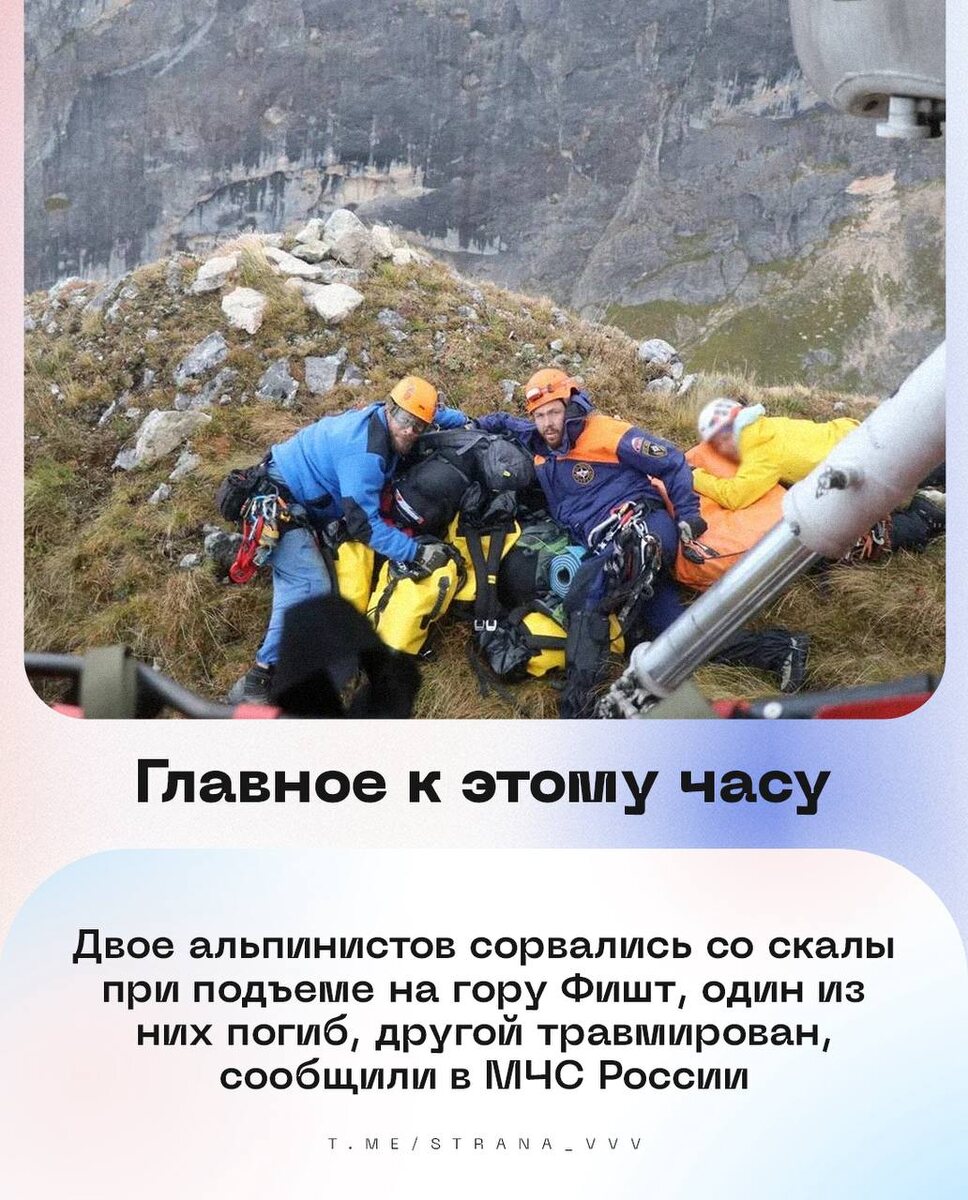 🇷🇺🇷🇺🇷🇺🇷🇺🇷🇺🇷🇺 на утро 30 сентября: 🔹Двое альпинистов сорвались со скалы при подъеме на гору Фишт, один из них погиб, другой травмирован, сообщили в МЧС России. 🔹Силы ПВО за ночь перехватили и уничтожили 81 украинский беспилотник над российскими регионами, сообщили в Минобороны РФ. 🔹Снижение показателя заболеваемости ОРВИ на 6,6% отмечается в РФ, сообщили в пресс-службе Роспотребнадзора. 🔹У побережья Камчатки зафиксировали ощущаемый афтершок магнитудой 6,1, сообщили в пресс-службе ГУ МЧС по региону. 🔹В ЛДПР предложили создать службу сопровождения для отцов-одиночек. 💰Курсы валют: доллар — 📉 82,87; евро — 📉97,14; юань — 📉11,60. 🇷🇺 В Стране. Подписаться