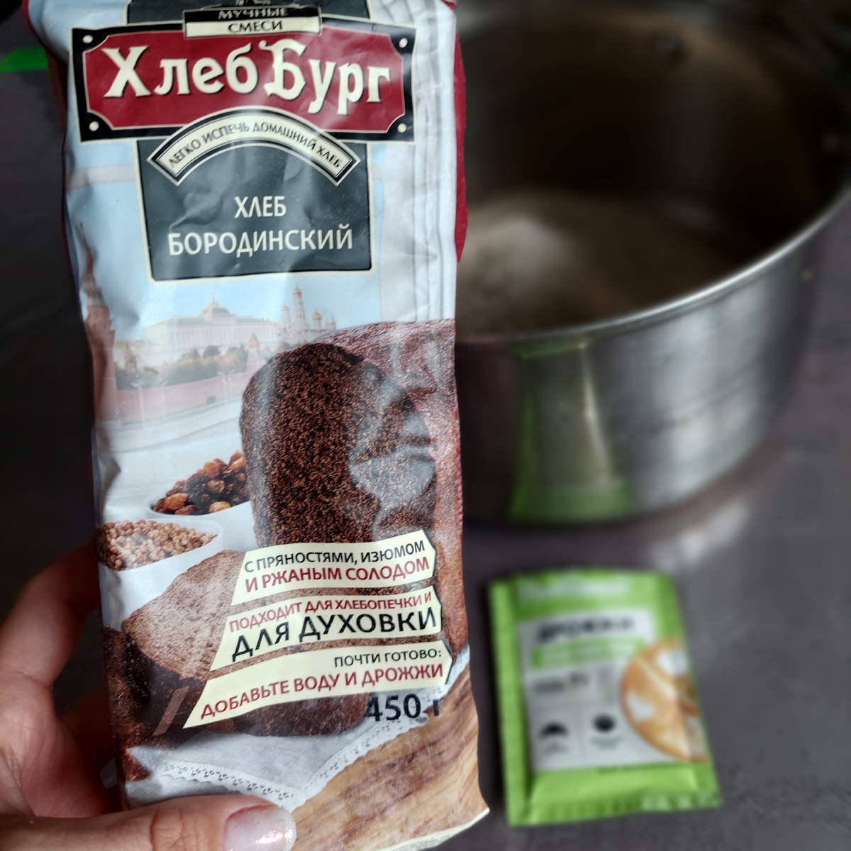 Всем привет, это Ольга! Как вы знаете, я обожают эксперименты на кухне, особенно те, что обещают быть быстрыми и простыми. Наткнулась на Wildberries на готовую хлебную смесь «Бородинский». Производитель обещал ароматный хлеб с пряностями, изюмом и ржаным солодом. Звучало идеально! Решила проверить, так ли это, и записала для вас весь процесс. Результат оказался... неожиданным. Вскрываю коробку. Внутри — пакет с самой смесью, а маленький пакетик сухих дрожжей покупала отдельно. Всё. Никаких отдельных добавок. «Ладно, — подумала я, — наверное, всё уже внутри». Открываю инструкцию и вижу первый красный флаг: «Добавьте 280 мл воды». Знаете, я много пеку, и меня сразу насторожила эта цифра. Мука-то ржаная, она очень влагоемкая! Но, решила следовать инструкциям. Начала замешивать. Добавляю заявленные 280 мл... и получаю не тесто, а рассыпчатую крошку! Это было больше похоже на влажный песок для песочного печенья, а не на тесто для хлеба. Пришлось буквально интуитивно доливать во