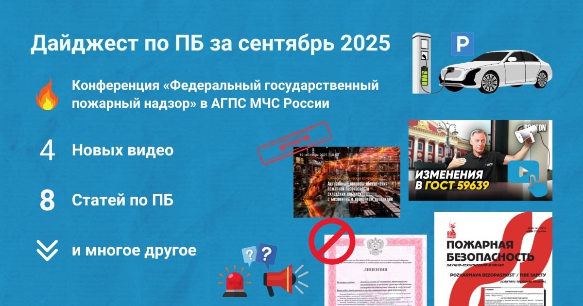 🔥 Подборка материалов за сентябрь 2025 Собрали для вас дайджест самых интересных публикаций по пожарной безопасности за сентябрь 2025 (https://clck.ru/3PUVB2) ❗Вы могли пропустить: → Как сохранить лицензию МЧС и избежать ее приостановки (https://clck.ru/3PUVDs) → Свод правил для складов с мезонинами. Итоги конференции во ВНИИПО (https://clck.ru/3PUVEH) → Романов Б.: новые требования к пожарному посту в 2025 году (https://clck.ru/3PUVEr) → и многие другие новости (https://clck.ru/3PUVB2) 💬 Пересылайте дайджест коллегам, чтобы больше специалистов смогли ознакомиться с новостями отрасли!