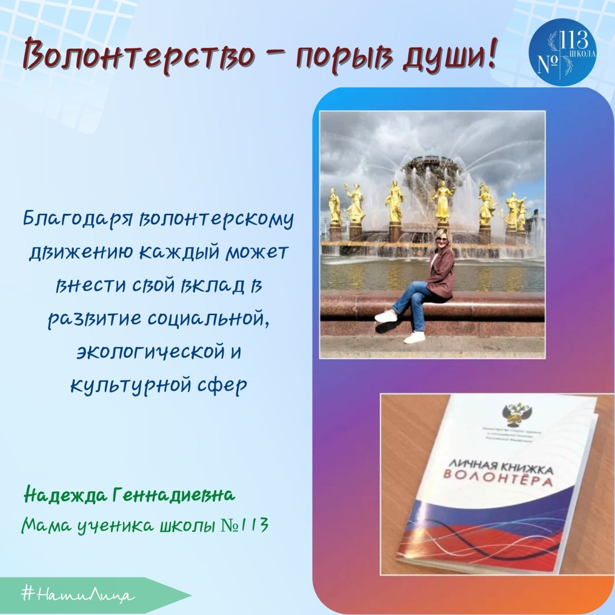 🗯 Здравствуйте! Вас приветствует мама нашего ученика, Надежда Геннадиевна. Сегодня поговорим о волонтерской деятельности. ♥️ Благотворительность -это когда, самые обычные люди творят настоящие чудеса! ☝️Благотворительность — одно из самых важных направлений современного мира. Именно Россия всегда славилась тем, что благотворительность и меценатство составляли неотъемлемую часть ее давних традиций. В настоящее время, когда добро и сотрудничество становятся все более ценными, волонтеры занимают особое место: они готовы бескорыстно прийти на помощь всем, кто в ней нуждается. 🙂 Благодаря волонтерскому движению каждый может внести свой вклад в развитие социальной, экологической и культурной сфер. В нашей школе сложилась добрая традиция участвовать в различных добрых делах, благотворительных акциях. 🤝 Хочешь помогать другим, проявлять инициативу, способствовать формированию гармоничной общественной среды, где каждый человек может вносить позитивное изменение в мир вокруг себя - вступ