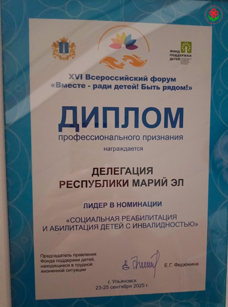 С 23 по 25 сентября в Ульяновске проходил XVI Всероссийский форум «Вместе – ради детей! Быть рядом!». Участие в нем принимала делегация из Марий Эл, которая вернулась в республику с наградой. Форум стал ключевой площадкой для диалога о демографии, поддержке семей с детьми и развитии социальных практик в регионах. В состав делегации от нашей республики вошли представители центра «Доверие», Комплексных центров социального обслуживания Йошкар-Олы и Звениговского района, Йошкар-Олинского реабилитационного центра для детей и подростков с ограниченными возможностями. По итогам форума Марий Эл была признана лидером в номинации «Социальная реабилитация и абилитация детей с инвалидностью» и удостоена диплома профессионального признания. 📲 Подписывайтесь на «МП» в МАХ