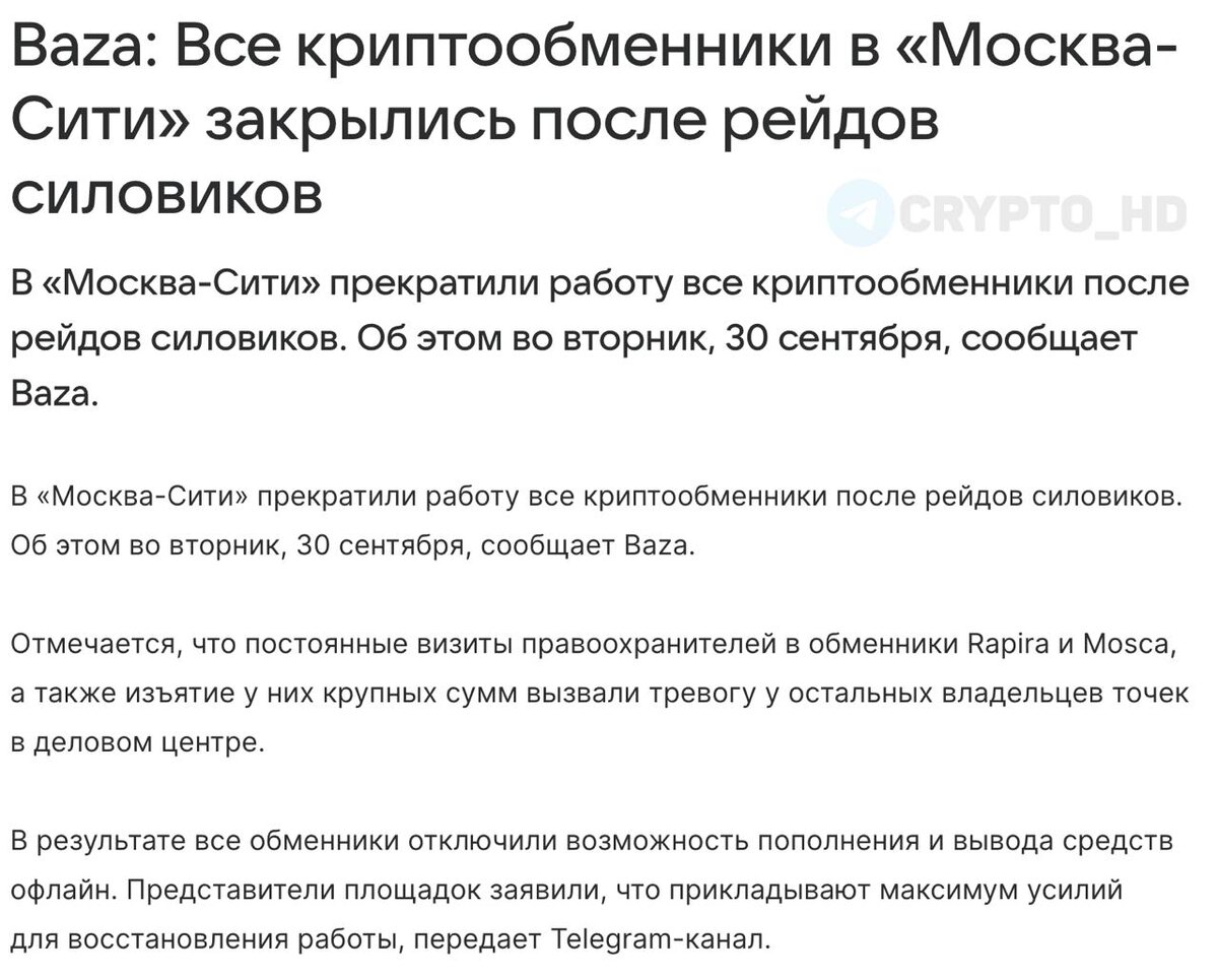 π·πΊπ« Π Β«ΠΠΎΡΠΊΠ²Π°-Π‘ΠΈΡΠΈΒ» Π·Π°ΠΊΡΡΠ»ΠΈΡΡ Π²ΡΠ΅ ΠΊΡΠΈΠΏΡΠΎΠΎΠ±ΠΌΠ΅Π½Π½ΠΈΠΊΠΈ ΠΏΠΎΡΠ»Π΅ ΡΠ΅ΠΉΠ΄ΠΎΠ² ΡΠΈΠ»ΠΎΠ²ΠΈΠΊΠΎΠ²