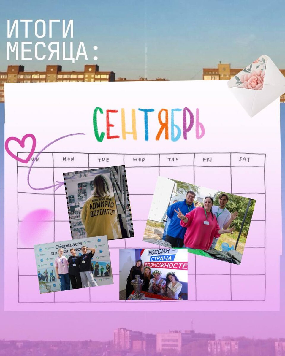 Итоги сентября!🍃 Первый месяц осени задал хороший настрой всему учебному году и подарил множество прекрасных событий! 💡Немного статистики: Проведено 15 мероприятий Выставлено 1320 часов Задействовано 164 волонтёров ❤️ Провели торжественные линейки для первокурсников ❤️ Совместно со СПИД-центром организовали акцию по борьбе со СПИДом в 3 городах Приморского края ❤️ Приняли участие в X Восточном экономическом форуме ❤️ Поучаствовали в презентации любимого хоккейного клуба «Адмирал» ❤️ Организовали Чистые игры совместно со Сбером ❤️ Открыли подачу заявок на ЦВ-треки ❤️ Провели Общий сбор ❤️ Объявили приём документов на стипендию Губернатора Приморского края Вот они #итоги за сентябрь!✨