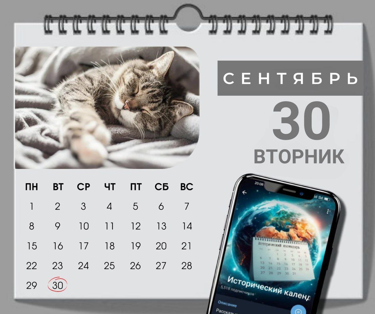 📌 Памятные даты: ● День воссоединения ДНР, ЛНР, Запорожской и Херсонской областей с Российской Федерацией (2022) ● День освобождения Карелии от фашистских захватчиков (1944) ● День памяти святых мучениц Веры, Надежды, Любови и матери их Софии 📌 Праздники: ● День интернета в России ● Международный день переводчика ● Всемирный день ортодонта ● День копирайтера ● День Сил Специального Назначения Росгвардии ● День специальных моторизованных воинских частей (СМВЧ) внутренних войск МВД России ● Вceмиpнaя aкция "Вpeмя для йoги" ● День грязевой маски ● День собак породы ньюфаундленд ● Международный день подкастов ● День любви к людям 🫶 ● День мурлыканья и потягивания ● День уютного вязаного пледа 📅 Исторический календарь