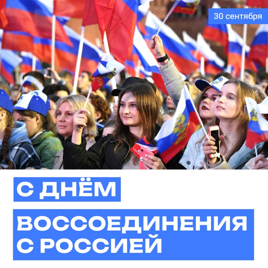 🇷🇺30 сентября мы, патриоты Отечества, отмечаем важную памятную дату — День воссоединения Донецкой и Луганской народных республик, Запорожской и Херсонской областей с Россией.