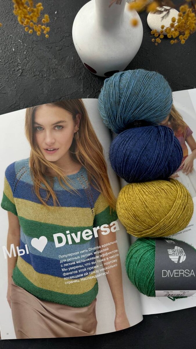 Что вязать из новой пряжи? В журнале Filati 67 целых 56 моделей, как говорится, на любой вкус. Дизайнеры предложили целую серию изделий с интересными сочетаниями цветов, а у нас все цвета есть в наличии: - из хита прошлого-настоящего года Diversa, пополнив палитру сочными оттенками и предложив интересные сочетания на простые футболки. - если не хочется заморачиваться сменой цвета, прятать потом кончики, возьмите Diversa print - ярко, полосато, интересно, а усилий никаких! - Per fortuna радует глаз: новые цвета, интересные сочетания. Что ж, это возможность еще что-то связать из любимого пушистика или наконец-то его попробовать.