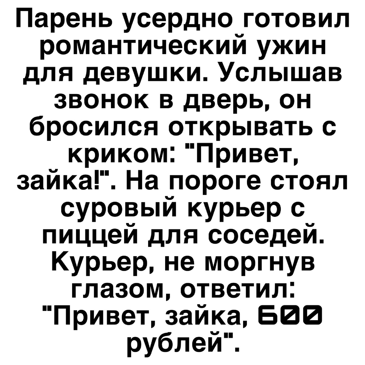 1. Не тот звонок Парень усердно готовил романтический ужин для девушки. Услышав звонок в дверь, он бросился открывать с криком: "Привет, зайка!". На пороге стоял суровый курьер с пиццей для соседей. Курьер, не моргнув глазом, ответил: "Привет, зайка, 600 рублей". 2. Кофе навынос Девушка заказала в кофейне кофе с собой. Бариста, передавая стаканчик, весело сказала: "Хорошего дня!". Девушка, автоматически ответив "Пожалуйста!", поняла свою ошибку только на улице, но было поздно. 3. Битва с техникой Мужчина несколько минут яростно ругался с Siri, пытаясь проложить маршрут. Ассистентка никак не могла понять название улицы. В итоге он в ярости крикнул: "Да отстань ты от меня!". Siri спокойно ответила: "Если я вам не нужна, просто отключите меня". В комнате воцарилась гробовая тишина. 4. Зов природы Парень зашел в общественный туалет в торговом центре. Заняв кабинку, он услышал, как за дверью собирается очередь и кто-то нетерпеливо похлопал по его двери. Желая пошутить, он громко
