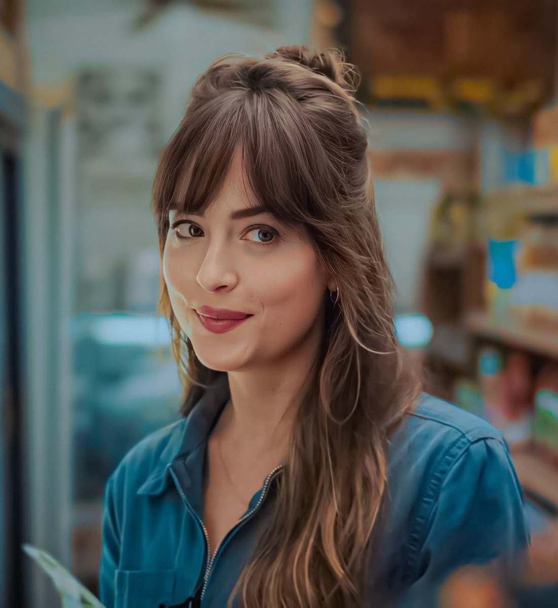 Дакота Джонсон сделала её своей визитной карточкой. Пряди мягко расходятся по бокам и обрамляют лицо, создавая ощущение лёгкости и романтики. Даже строгий образ с такой челкой становится мягче, а в повседневности она работает как универсальный приём — подходит и к деловому костюму, и к джинсам с футболкой. Удобство в том, что «шторка» не требует строгой укладки и легко сливается с основной длиной волос, когда отрастает.