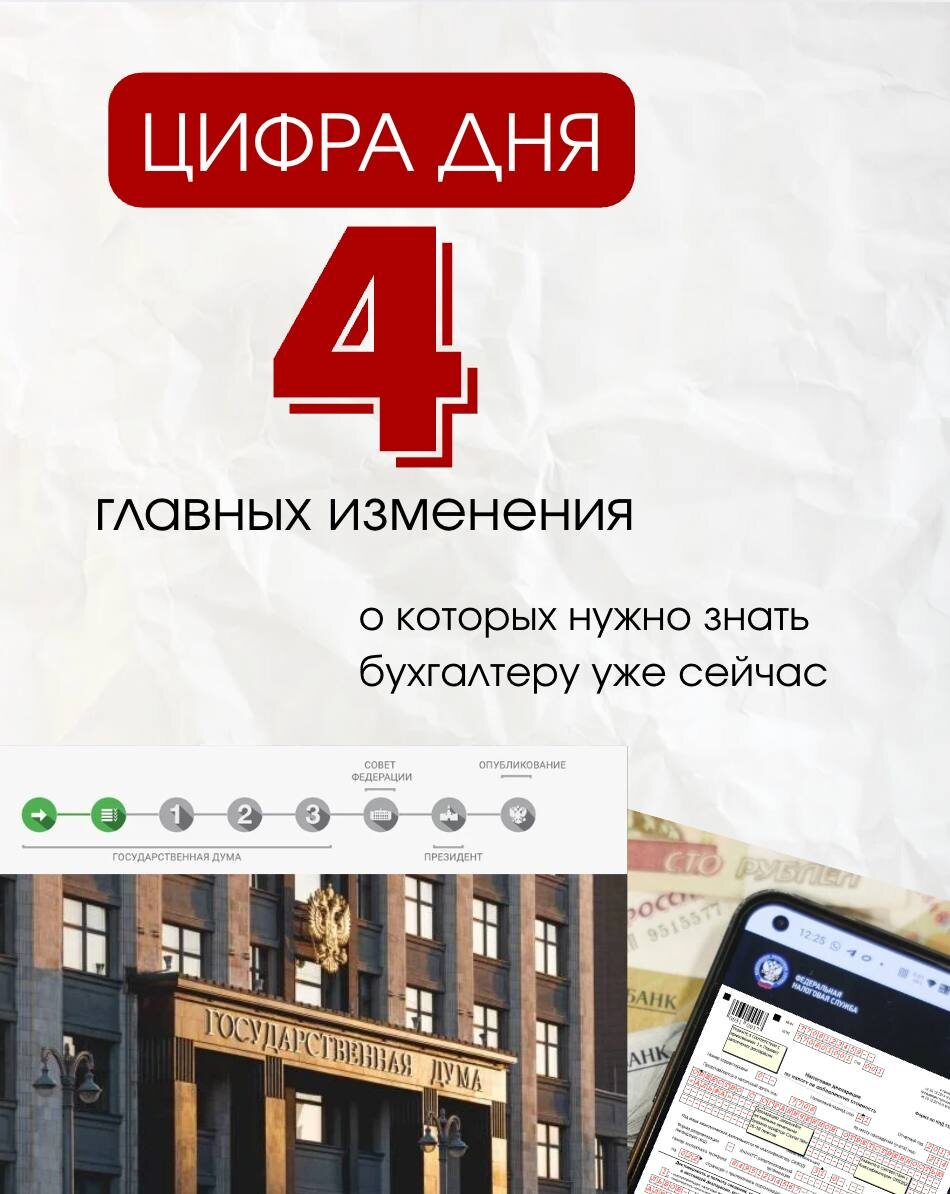 4 главных изменения в НК, которые 22 октября в первом чтении рассмотрит Государственная Дума, о которых нужно знать бухгалтеру уже сейчас. 1️⃣ НДС ⭕️ 22% вместо 20%. Льготная 10% остаётся. ⭕️ 10 млн вместо 60 млн. Пока не говорят, что будет у упрощенцев при превышении лимита в 10 млн, надеемся, что останутся 5 и 7%. ⭕️ Пересматривают льготы по ст. 149 НК Порог доходов для уплаты бизнесом НДС снизят с 60 до 10 млн руб. для пресечения незаконных схем по минимизации налогов и дроблению компаний, а не для сбора дополнительных средств, пояснил Силуанов 2️⃣ Патент 10 млн - порог выручки для права на применение ПСН. Исключают из видов деятельности по ПСН, ушла эпоха: 🔗 Автомобильные грузоперевозки (а пассажирские остаются) 🔗 Розница с торговыми залами. Формулировка подпункта про розничную торговлю переписывается: оставляют «через объекты нестационарной торговой сети», развозная то есть и ярмарочная остается. 3️⃣Страховые взносы ➡️ Для директора — единоличного исполнительного органа: е