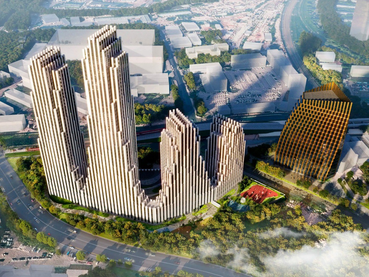 🟧🟧🟧🟧🟧🟧🟧🟧🟧 Проектом предусмотрено строительство пяти корпусов от 19 до 49 этажей футуристической формы. Общая площадь проекта составит более 140 000 м². Архитектурное решение разработано бюро Ariada.