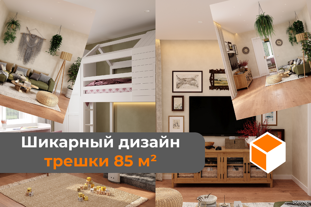 Посмотрите какой шикартный дизайн получился для рехкомнатной квартиры 85 м² от наших дизайнеров