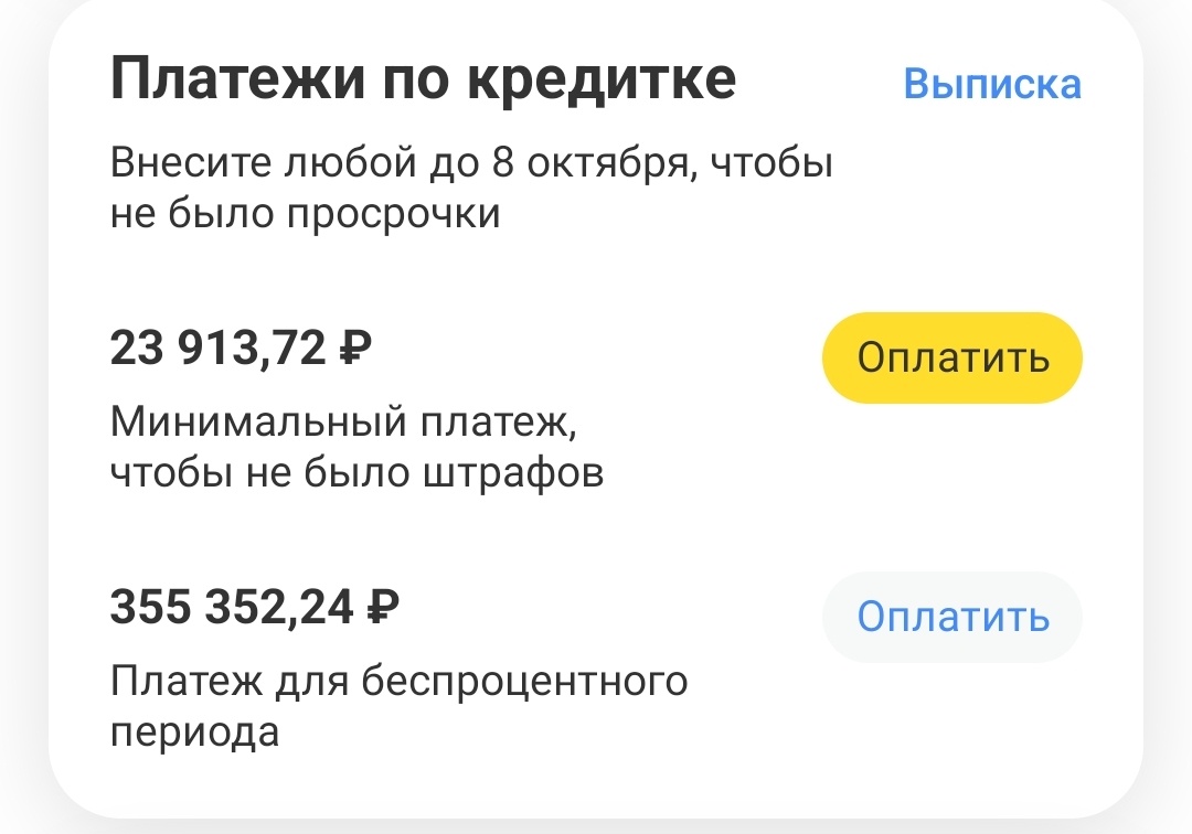 Я внесла 355 тысяч рублей по кредитке Т-Платинум и должна ещё 112. Учитывая зарплату 85, от таких цифр попахивает долговой ямой и кредитным рабством. Но все не то, чем кажется. Это - мой способ извлекать доход. Т-банк от меня ещё никаких денег не дождался, кроме оплаты годовой подписки Pro - я в беспроцентном периоде с самого получения карты в 2022 году. 100 тысяч ежемесячно перевожу на накопительный счёт в Тэшке (чтобы лишних переводов между банками не делать). 250 выводила в беспроцентный период на брокерский счёт в Совкомбанке, покупала фонды денежного рынка. В расчетную дату по кредитке я их продала - после уплаты комиссий и налогов получилось на 2763,37 больше, чем забирала с карты. Однако узнала, что банк прикрыл лавочку с выводом лимита на любые брокерские счета, а потому деньги не вернула, а оставила ещё полежать под проценты до крайней даты внесения платежа. Если весь лимит выводить больше нельзя, пора закрывать кредитку? Или хотя бы уменьшить лимит? Нет. Правда, в таком случ
