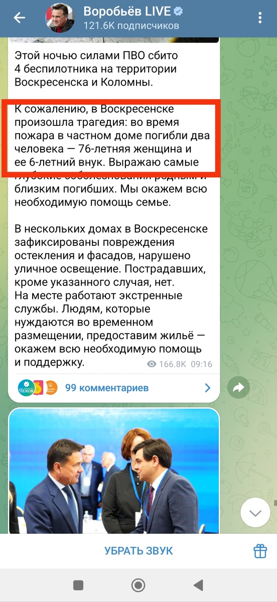 По сообщениям медиа 29.09.2025 в Воскресенске(*), после атаки украинских БПЛА, погибли 76-летняя женщина и 6-летний мальчик (бабушка и внук). Погибли в доме, который загорелся "вследствие падения обломков БПЛА". Почти каждый день погибают и получают травмы жители Белгорода и Белгородской области, по которым наносят удары (БПЛА, ракетная артиллерия) украинские каратели. И что стóят бравурные отчёты о "взятии новых посёлков и хуторов", если необезпечена безопасность российских граждан в тылу? И почему "тысячи российских ракет и БПЛА, обрушивающихся на Украину как удар возмездия", не приводят к сколько-нибудь значительным разрушениям критической инфраструктуры, тогда как несколько украинских ракет и БПЛА способны вызвать перебои с подачей электроэнергии в Белгороде и Белгородской области? И предполагается ли реакция тов. Путина сотоварищи в виду реальной угрозы массовых жертв после "санкции" украинским карателям на удары ракетами Storm Shadow и Tomahawk по городам федерального зн