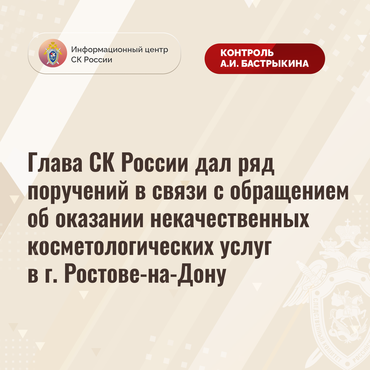 Глава СК России дал ряд поручений в связи с обращением об оказании некачественных косметологических услуг в г. Ростове-на-Дону