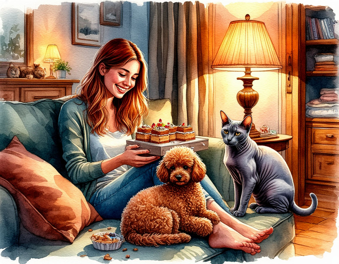Гости всегда проверяют характер дома. Особенно если в нём живут кошка с чувством собственного достоинства, кот с ранимой душой и щенок, который искренне считает, что все пришли именно к ней. Вечером в дверь раздался звонок. Хозяйка удивилась: гостей она не ждала. Первой отреагировала Грета. Она лениво потянулась на подоконнике, но как только раздался второй звонок, моментально спрыгнула вниз и важно направилась в спальню. — Я вообще-то не планировала приём. Пусть сама разбирается, — строго «сказали» её глаза. Гектор напротив застыл. Уши у него слегка прижались, хвост нервно дёрнулся. Он прислушивался к каждому звуку за дверью и выглядел так, будто решает: бежать или ждать. Буся от радости едва не перевернула миску с водой — прыгала, крутилась, виляла хвостом. — Кто-то пришёл! Ко мне! Ко мне! Хозяйка открыла дверь. На пороге стояла её недавняя подруга с пакетом пирожных и виноватой улыбкой: — Надеюсь, я не помешала? Просто оказалась неподалёку и решила заглянуть. — Да ты что, заходи! —