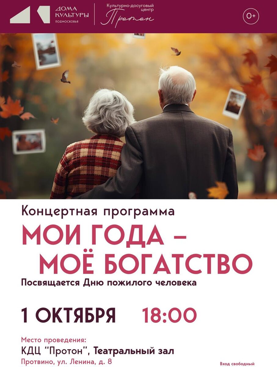 ✨ Концертная программа «Мои года — моё богатство», посвящённая Дню пожилого человека 💃В программе: выступление творческих коллективов КДЦ и увлекательная викторина🧩! 🚫 Возраст: 0+ 📆 01.10.2025 🕒 18:00 🏢 ДК "Протон" 📍 г.о. Серпухов, г. Протвино, ул. Ленина, 8 💰 Вход свободный❗️ ⭐Поддержать канал голосом 💰 Вакансия - курьер в Серпухове ✅ Мероприятия Серпухов https://dzen.ru/id/66f01c6eb4c6fe60c9ca1608 http://vk.com/serpukhov_events http://dzen.ru/serpukhov_events