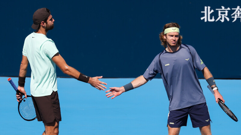 Турнир ATP-500 в Пекине в одиночном разряде неудачно начался для Андрея Рублева и Карена Хачанова. Однако в дуэте российские теннисисты неудержимы! В Китае они еще не отдали ни одного сета! Вот и в полуфинале Рублев и Хачанов добыли уверенную победу. Теперь наш дуэт сразится в Китае за трофей, а общий призовой фонд составляет более 4 млн долларов. 14-я ракетка мира Андрей Рублев проиграл в первом круге итальянцу Флавио Коболли из Италии (25-й номер рейтинга) — 6:7, 3:6. Вылетел из турнира после стартового матча и Карен Хачанов. Россиянин, занимающий 10-ю строчку в ATP, уступил французу Александру Мюллеру (38) — 6:4, 6:7 (5:7), 4:6. В парном разряде ожидалось, что наши теннисисты выступят куда лучше. Всё-таки у них богатейший опыт совместной игры на корте: они четыре раза выходили в финал и становились чемпионами «Мастерса» в Мадриде в 2023 году. Да и мотивации после поражений у россиян хватало. И действительно, наш дуэт начал с уверенной победы над аргентинцем Франсиско Серундоло и фра
