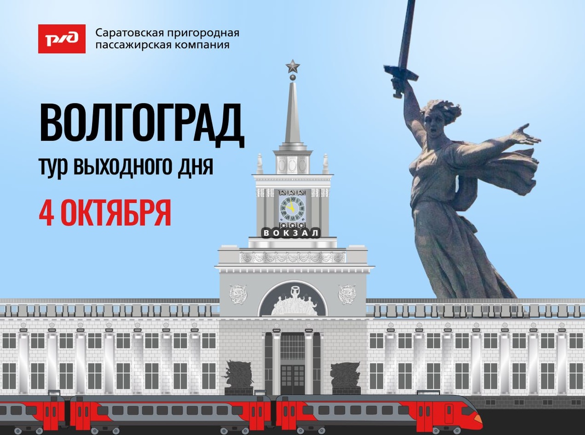 🤩 Тур выходного дня в Волгоград 4 октября! 🤩 Отправляйтесь в незабываемое путешествие на электропоезде и прикоснитесь к истории города-героя. Всего пять часов в пути – и вы окажетесь в самом сердце Волгограда, где вас ждет насыщенная программа: - Величественный Мамаев Курган, место ожесточенных сражений, где пройдет пешеходная экскурсия - Обзорная экскурсия по городу с посещением знаковых мест: Аллея Героев, Дом Павлова, Мельница Гергардта и многое другое - Уникальная экспозиция под открытым небом на территории музея-панорамы "Сталинградская битва" (билеты не входят в стоимость экскурсии) 🚆 Поездка на электропоезде – это комфорт и удобство, а наша экскурсионная программа позволит вам максимально эффективно использовать время и узнать много нового. ⏰ Расписание: - время отправления 06:38 ЖД Вокзал, г. Саратов (время местное) - время прибытия о.п. Мамаев Курган, г. Волгоград 10:50 (время московское) - время прибытия ЖД Вокзал, г. Волгоград 11:01 (время московское) - время отправле