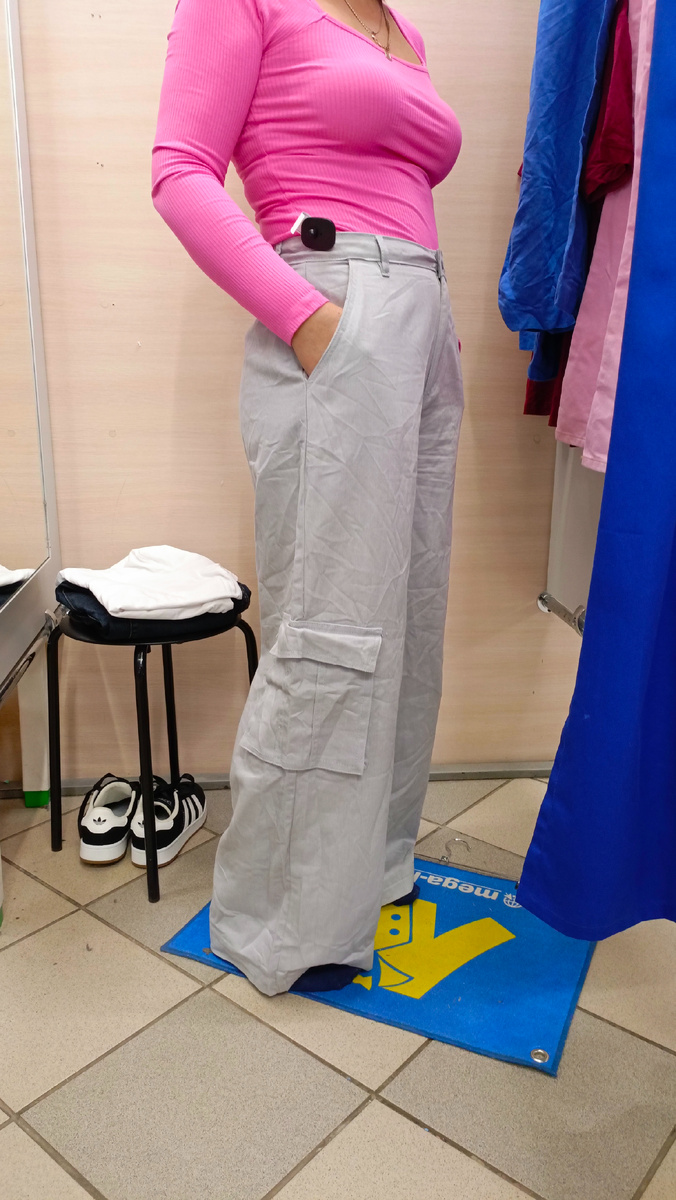 Приветствую всех на своём канале! Одежды много, толку мало - это про нынешний завоз. Не впечатляет!!! 😒Хотела было добавить фразу: "от слова "совсем", но тогда бы это не было правдой. Ведь в последнее наше посещение, наконец-то , нашлись вещи и для покупки. Чрезвычайно понравились хлопковые карго. Я их назвала "чехол для танка" 😁. Но шопаделать, времена стройной меня всё дальше и дальше. Действительность такова, что расту я как на дрожжах😳🤥. Видимо, придётся распродавать гардеробчик. Эххххх... Давно мечтала о широких (очень широких) брюках. Вот они самое то👍! И конечно же, я в них уже ездила на работу. Футболка Guess тоже куплена в Мегахенде. Но гораздо раньше. Следующая покупка была найдена в отделе "платья" , но это, конечно, не платье. Это шёлковая комбинация. Естественно, я вам не могла показать её полностью. Мало вероятно, что я рискну носить её как платье. Но зарекаться не буду 🤣🤣🤣. Верх у нее сделан кружевным с шёлковой подкладкой. И тонкие бретельки. Поскольку э