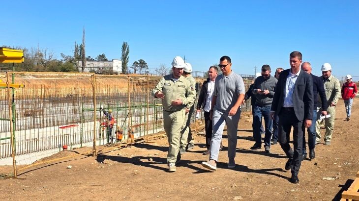 Заместитель министра строительства РФ Алмаз Хусаинов и министр строительства Республики Крым Эдуард Щёголев посетили реконструируемые канализационно-очистные сооружения (КОС) в Евпатории.